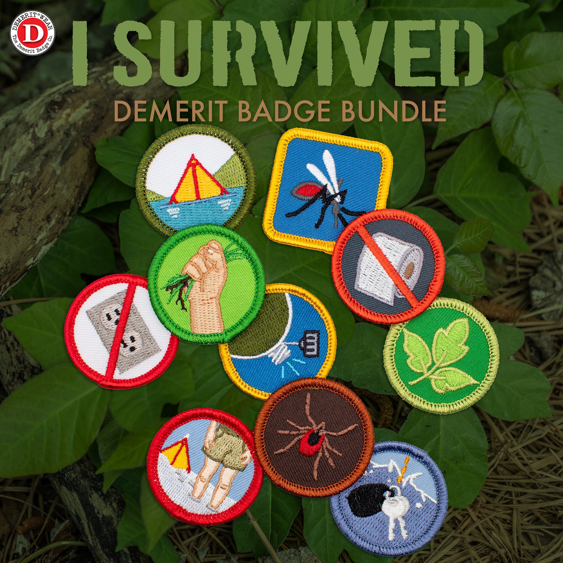 Maybe your summer camping trip wasn't the pristine nature getaway that social media lead you to believe it would be. But you lived, and we'd be willing to bet you had some fun anyway. Get the Demerit Badge bundle for all your friends that says "I went outside, and I survived."
