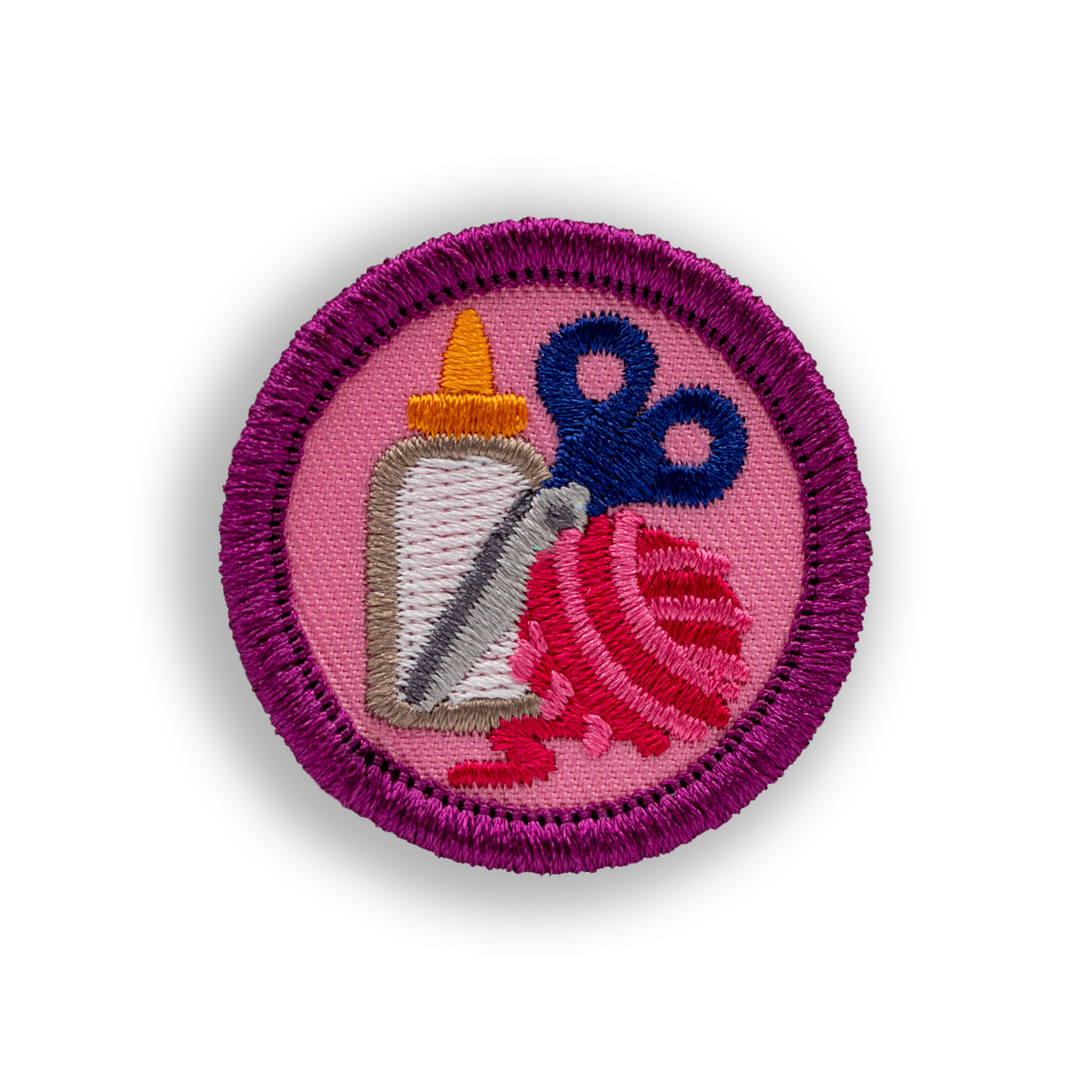 1.5" embroidered fake merit badge. Choose from iron-on, velcro, or peel & stick adhesive backing.