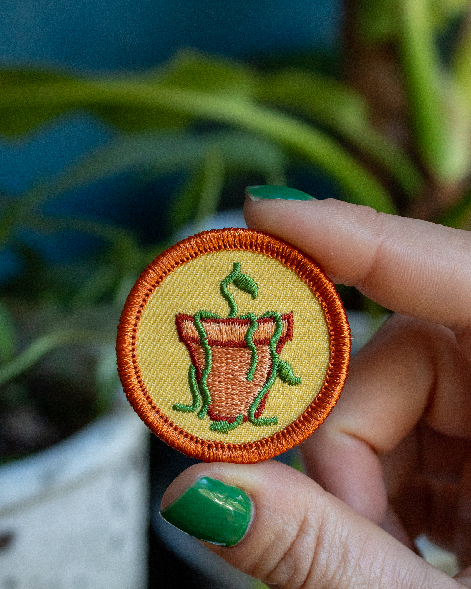 1.5" embroidered fake merit badge. Choose from iron-on, velcro, or peel & stick adhesive backing.